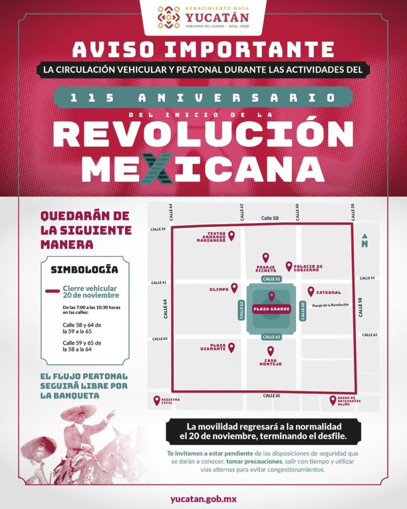 Cierres viales en Mérida por desfile del 115 aniversario de la Revolución Mexicana Uncategorized / noviembre 20, 2025 Cierres viales en Mérida por desfile del 115 aniversario de la Revolución Mexicana Leer más »