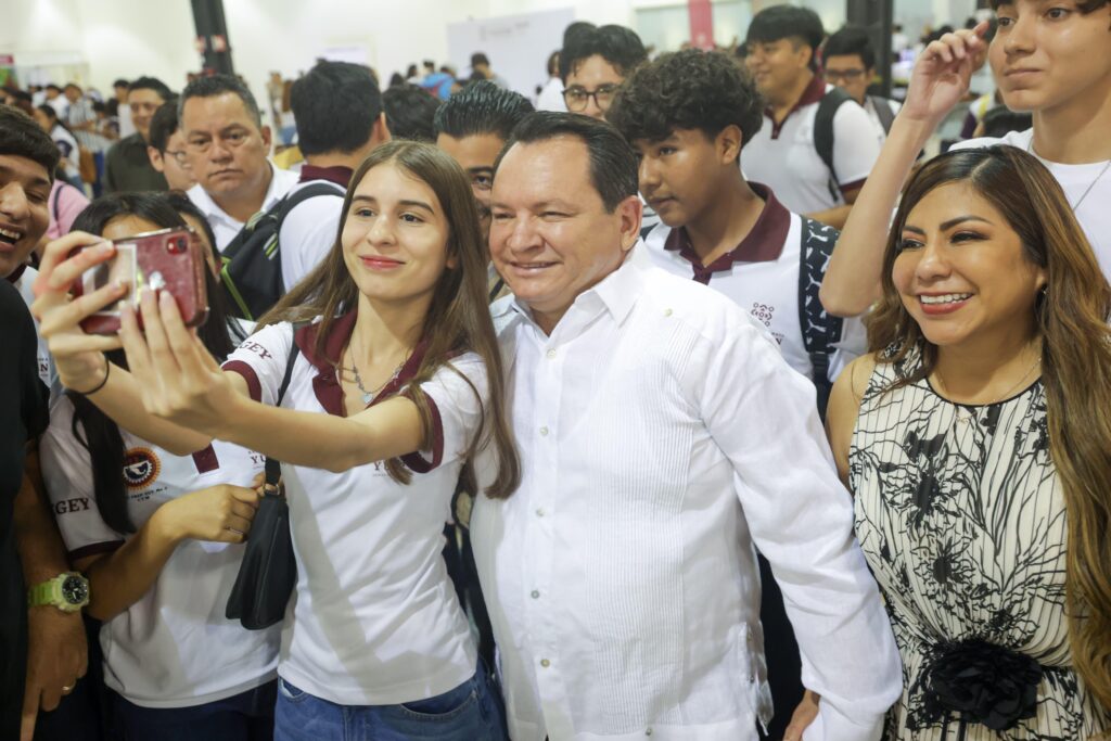 Asimismo, el Gobernador agradeció a la Presidenta Claudia Sheinbaum Pardo por su apoyo a Yucatán y a sus juventudes, a través de programas como Jóvenes Construyendo el Futuro, que se complementa con la convocatoria Juventudes Renacimiento para atender a quienes no pueden aplicar al apoyo federal, por lo que les invitó a consultarla.