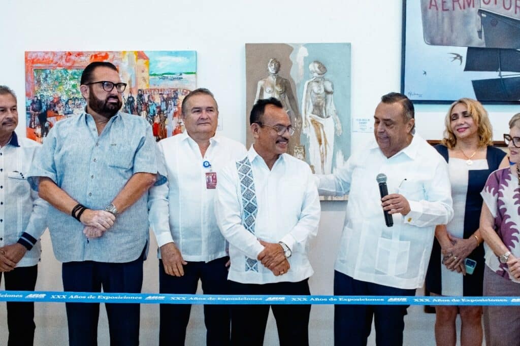 Durante la ceremonia, en el corte de listón participaron varios de los artistas expositores, junto con el Comandante de la AFAC Mérida, José Ignacio Carrera Rivera, el Administrador del Aeropuerto, Lic. Oscar Carrillo Maldonado, y el Lic. Juan Martín Pacheco, presidente de la Asociación Mexicana de Hoteles en Yucatán.