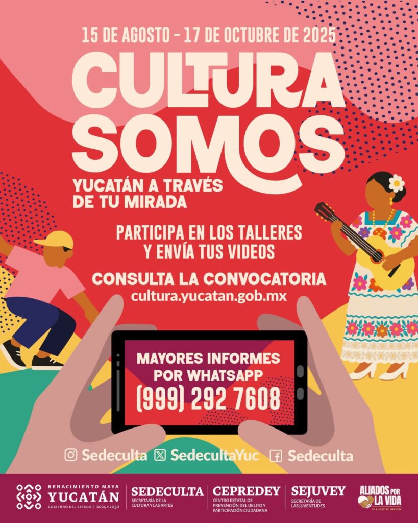 Para participar en Cultura SOMOS solo es necesario enviar un video en el que se refieran los elementos antes mencionados al correo culturasomos@yucatan.gob.mx o al Whatsapp 99992 927608.