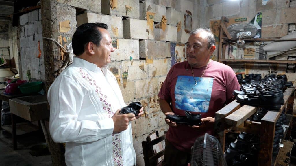 El Gobernador Joaquín Díaz Mena realizó una visita a productoras y productores de calzado en Ticul, donde constató los avances enla fabricación de los zapatos que forman parte del programa y escuchó directamente las experiencias de las y los trabajadores que hoy cuentan con ingresos seguros gracias a esta estrategia.