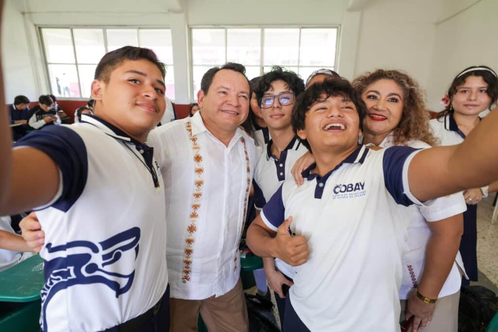 Aunado a ello, el titular del Ejecutivo estatal indicó que se está apoyando a las madres y los padres de familia con útiles escolares, zapatos y chamarras para estudiantes del nivel básico, y con las becas Benito Juárez y Rita Cetina Gutiérrez.