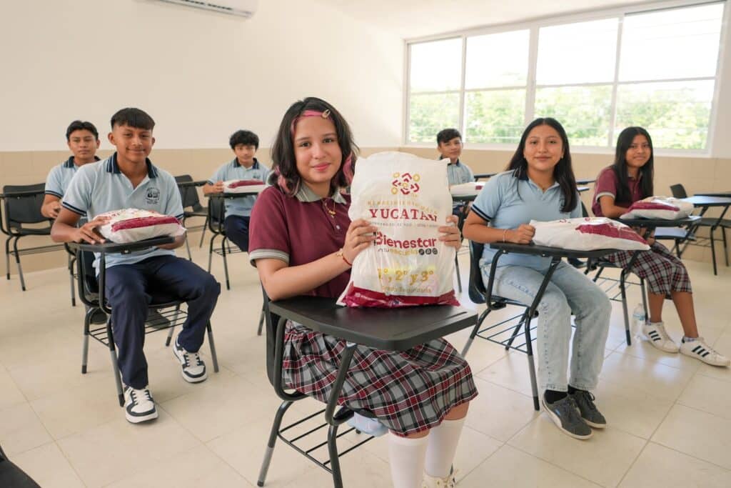 En presencia del personal directivo del plantel, el Gobernador entregó también paquetes escolares del programa Bienestar en tu Escuela 2025, destinados a secundarias de municipios yucatecos.