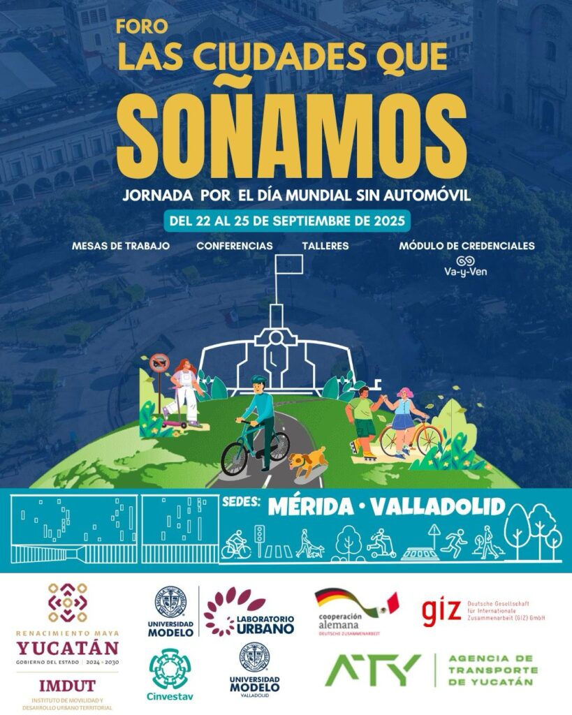 Del 22 al 25 de septiembre, Yucatán albergará el foro “Las ciudades que soñamos”, un espacio de encuentro que reunirá a especialistas nacionales, autoridades, académicos, organizaciones sociales y ciudadanía para reflexionar sobre el futuro de la movilidad y delinear acciones que permitan avanzar hacia ciudades más seguras, sostenibles e inclusivas.