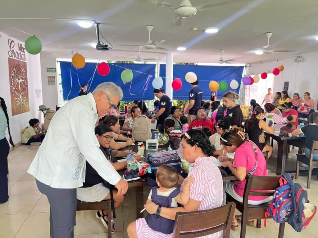 Asimismo, se realizaron juegos y dinámicas, se impartió una plática sobre nutrición y se degustaron bocadillos en la convivencia familiar, en la que participaron 50 niñas y niños y 55 mujeres embarazadas y madres de familia.