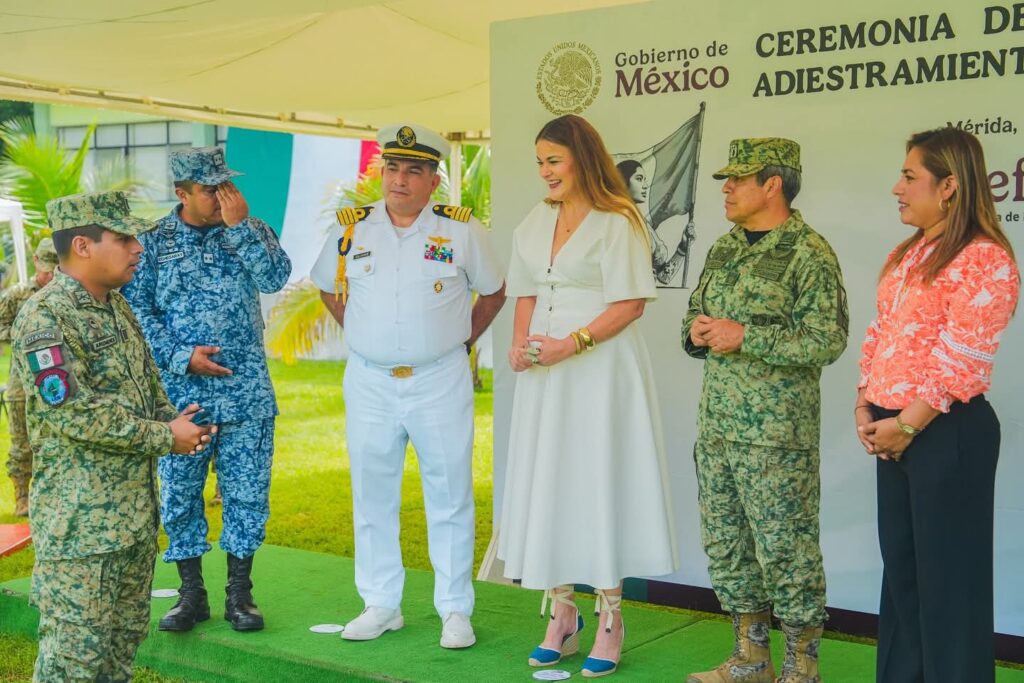 La presidenta municipal de Mérida, Cecilia Patrón Laviada, asistió a la ceremonia de inicio del segundo escalón de adiestramieNto 2025 del Servicio Militar Nacional, que marca el comienzo de 13 semanas de instrucción en 20 materias clave para la formación militar de 108 jóvenes voluntarios.
