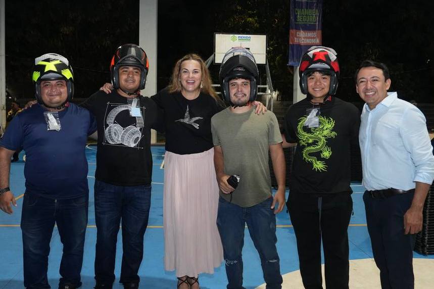 Para cuidar a más meridanas y meridanos que utilizan la motocicleta como herramienta de trabajo, la presidenta municipal Cecilia Patrón Laviada entregó más de 500 cascos certificados con la norma DOT a repartidores que trabajan en aplicaciones, fuente principal de ingresos y sustento para sus familias.