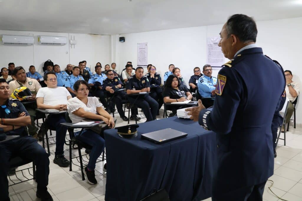 Para continuar fortaleciendo los esquemas de capacitación del personal operativo de la Policía Municipal, agentes pertenecientes a las áreas de seguridad ciudadana, vialidad y el programa guardaparques, tomaron el curso “Difusión de la Cultura de la Seguridad Nacional”, a cargo del General Piloto Aviador Magdaleno Castañón Muñoz adscrito a la Base Aérea No. 8.