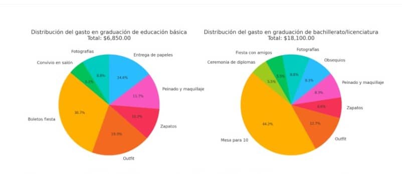 El gasto incluye seis boletos para la fiesta de graduación $2,100.00, “outfit” (vestido o traje para el graduado) $1,300.00, zapatos $700.00, peinado y maquillaje $800.00, entrega de papeles $1,000.00, un paquete de fotografías $600.00 y el convivio del menor en su salón $350.00.