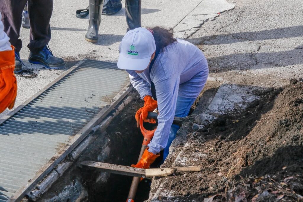 “Hasta el momento se ha dado mantenimiento a 2 mil 602 zanjas colectoras en colonias como San José Tecoh, San Antonio Xluch, Castilla Cámara, Las Américas, Vergel, Juan Pablo II, Residencial Pensiones, llegando a cada punto cardinal de la ciudad, con el despliegue de 706 colaboradores en brigadas de 14 direcciones municipales, coordinadas por Servicios Públicos para prevenir encharcamientos”, comentó la presidenta.