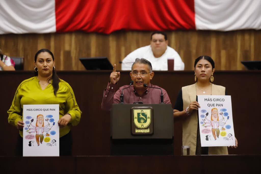 También en su intervención Cuevas Mena exhibió las inconsistencias del punto de acuerdo panista, señalando que se basó en un supuesto consumo promedio de 1,500 a 2,500 kWh, cuando el consumo real de la mayoría de los hogares yucatecos es de apenas 300 a 400 kWh. De esta manera, la propuesta de los panistas está pensada únicamente para los que más tienen, clásico de este partido neoliberal, “Otra vez queda claro a quién representan: solo a sus amigos y no al pueblo. El oportunismo político es la constante de quienes dejaron sin electricidad a miles de familias y hoy fingen indignarse”, recalcó.