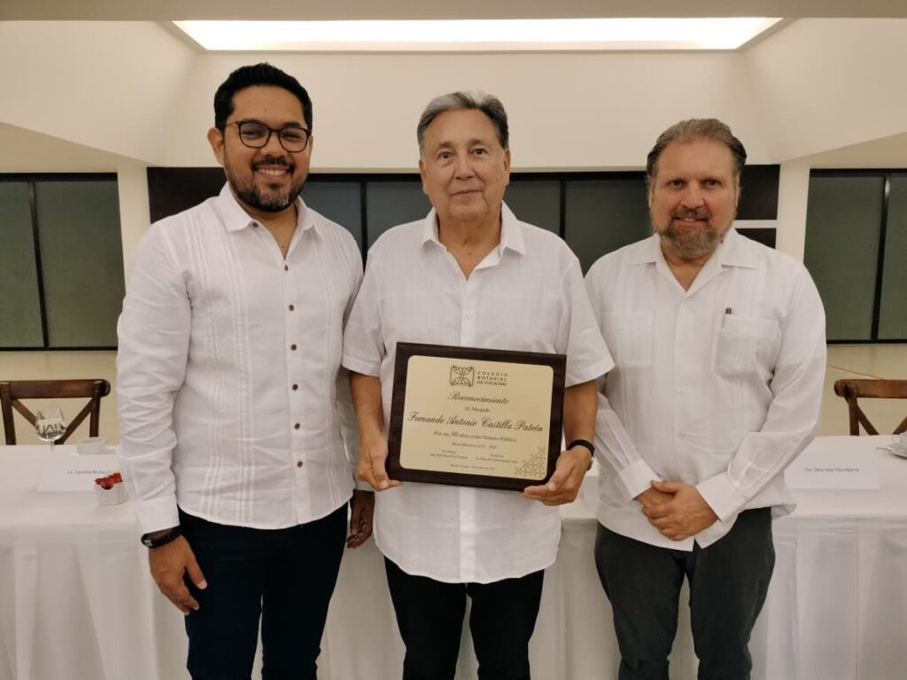 Durante el encuentro se entregó un reconocimiento al Notario Público Número 70, Fernando Antonio Castilla Patrón, por sus 50 años de trayectoria en la profesión.