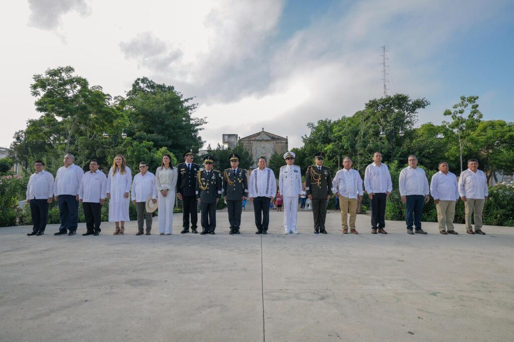 Momentos antes, el Gobernador, junto con representantes de los Poderes del estado, realizó el izamiento del lábaro patrio en el asta central de la Plaza Grande, dando por iniciadas las actividades conmemorativas de esta efeméride en su aniversario 115. En el evento estuvieron presentes el coordinador territorial de la Guardia Nacional Región Sureste, general de brigada Juan Carlos Guzmán Giadans; el comandante de la IX Zona Naval, vicealmirante Héctor Rafael Solís Hernández; el coordinador estatal de la Guardia Nacional en Yucatán, general brigadier Isidoro Cázares Cruz; el representante de la X Región Militar, coronel de zapadores Augusto Melo Suárez; el titular de la SSP, Luis Felipe Saidén Ojeda; la magistrada presidenta del Tribunal Superior de Justicia y del Consejo de la Judicatura del Poder Judicial de Yucatán, Erika Beatriz Torres López, y los presidentes de la Junta de Gobierno y Coordinación Política y de la Mesa Directiva del Congreso del Estado, Wilmer Manuel Monforte Marfil y Alejandro Cuevas Mena, respectivamente.