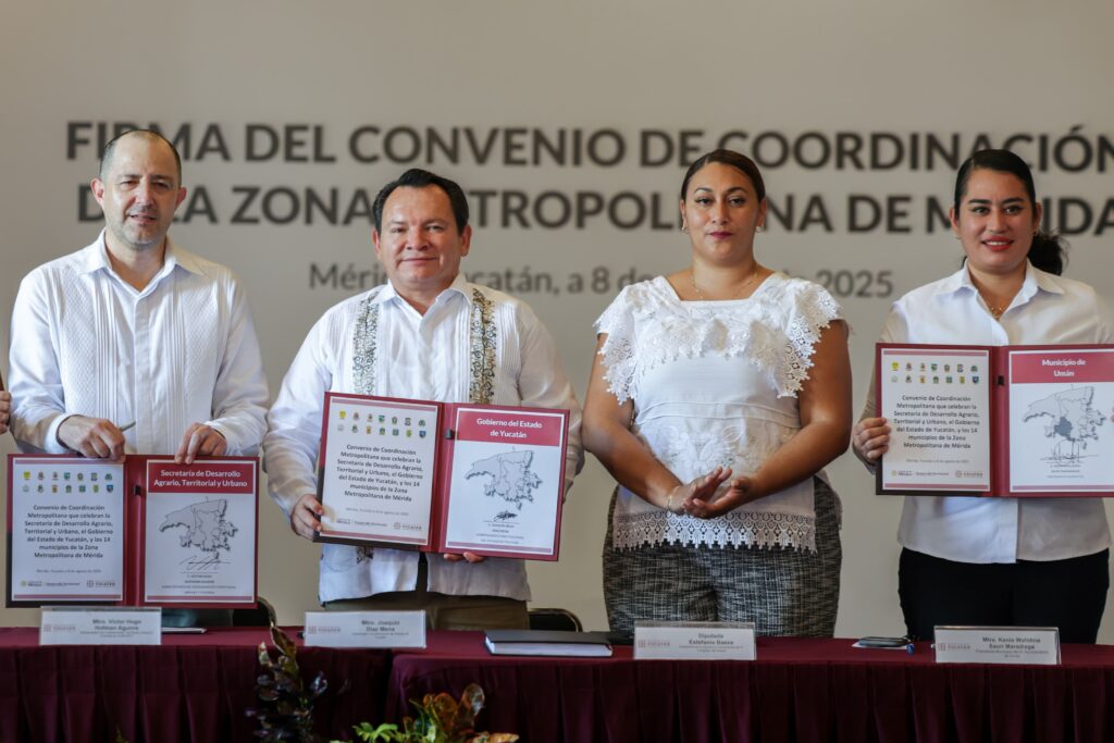 El Gobierno del Estado de Yucatán firmó este viernes un convenio de colaboración con la Secretaría de Desarrollo Agrario, Territorial y Urbano (SEDATU) y los ayuntamientos de los 14 municipios que integran la Zona Metropolitana de Mérida, con el objetivo de atender de forma coordinada los retos del crecimiento y desarrollo urbano de esta región.