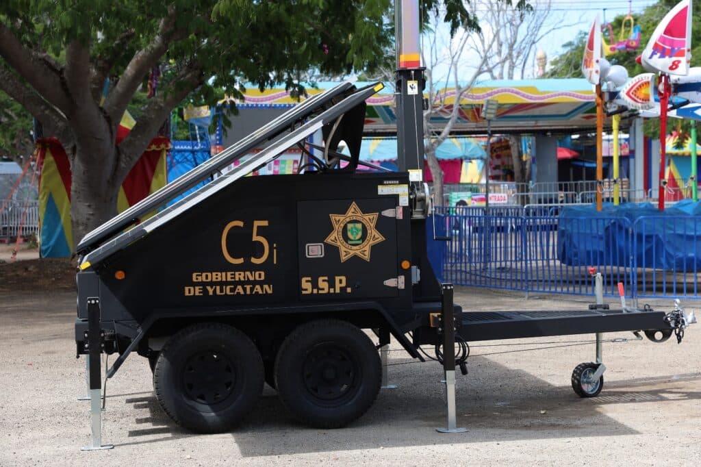 Las unidades de videovigilancia cuentan con remolques solares móviles equipados con mástiles telescópicos de 7.5 metros, cámaras con seguimiento de placas, personas y objetos, inteligencia artificial para el análisis de tráfico, cámaras PTZ IP, faro buscador con alcance de 150 metros, terminal de almacenamiento y altavoces para voceo.