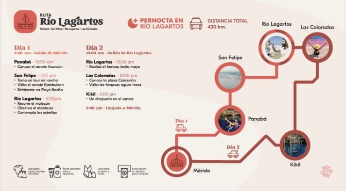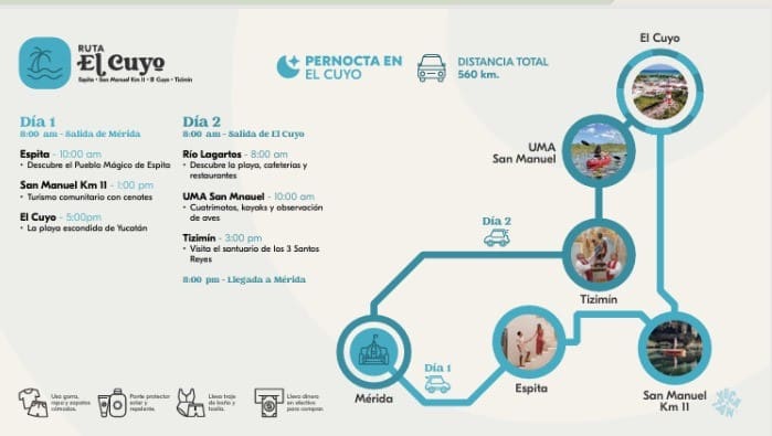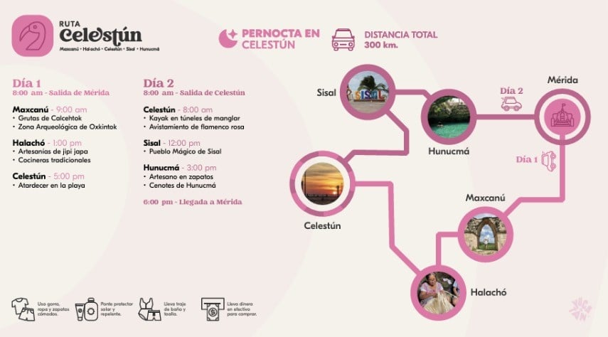 En esta primera etapa, la campaña incluye siete rutas turísticas: Río Lagartos, El Cuyo, Sur Mágico, Izamal, Celestún, Valladolid Mágico y una ruta especial de museos en Mérida.