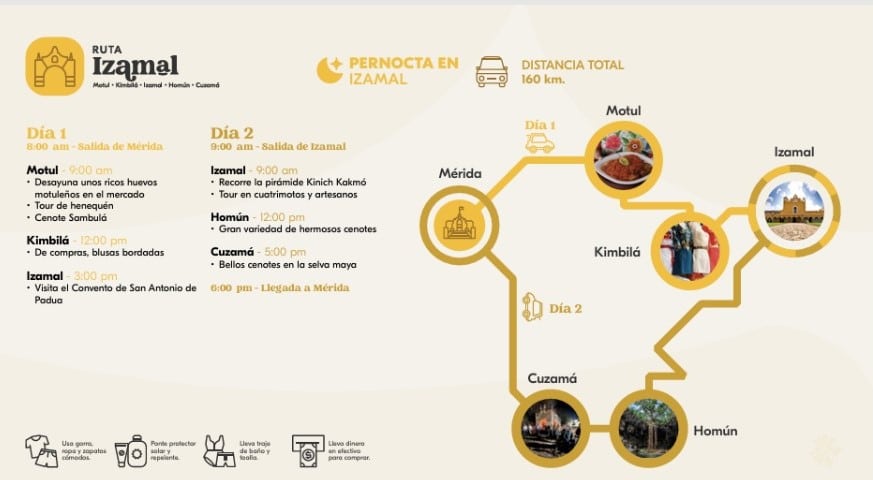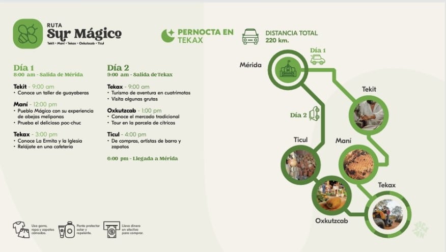 La campaña inicia con siete rutas turísticas en distintas regiones del estado y una ruta especial de museos en Mérida, pensadas como itinerarios sugeridos para realizar en dos días. Los recorridos están diseñados para que cada persona pueda adaptarlos a su gusto y enriquecerlos con otros puntos de interés cercanos.