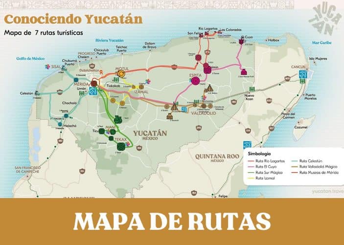 Las rutas son: Río Lagartos, El Cuyo, Sur Mágico, Izamal, Celestún, Valladolid Mágico y una ruta especial de museos en Mérida.