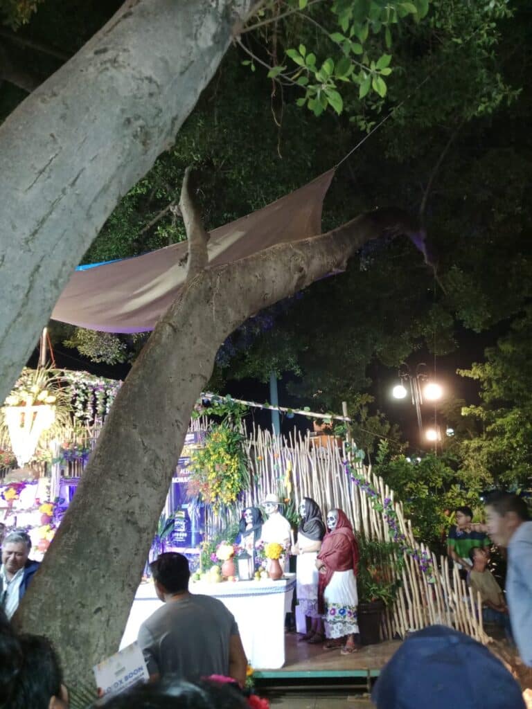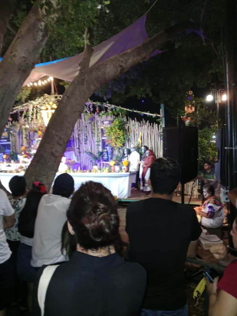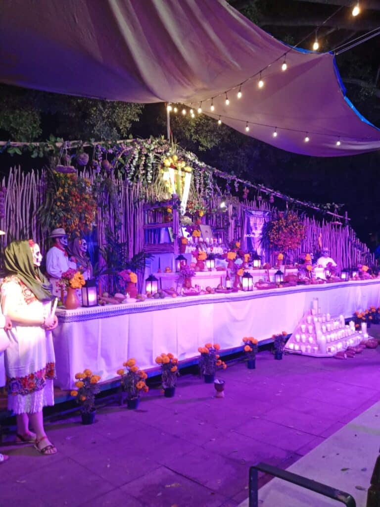 “Hoy es una noche muy especial para todos los que habitamos esta ciudad. Este altar monumental está profundamente ligado a la tradición maya, con elementos que reflejan el sincretismo entre la cosmovisión ancestral y la fe judeocristiana. Es un altar distinto, con tres niveles que representan el inframundo, el mundo y el espacio de los dioses.”