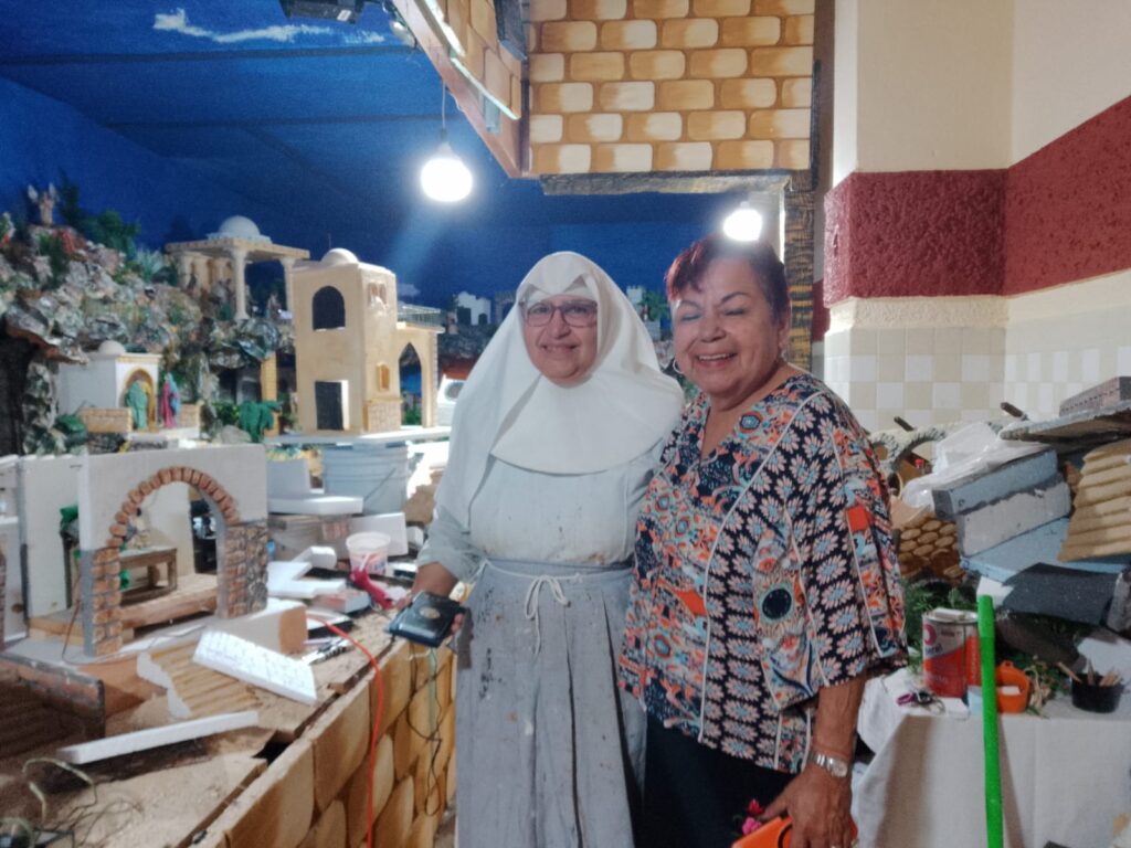El alma detrás de esta obra es Sor Isabel, quien desde hace más de 10 años ha asumido la responsabilidad de diseñar y dar vida a este nacimiento monumental. Con materiales reciclables como el unicel, piedras artificiales y estructuras ligeras, la religiosa construye casas, montañas, caminos y paisajes completos, aplicando principios de perspectiva, proporción y detalle que sorprenden incluso a arquitectos, artistas y especialistas que acuden a visitarlo.