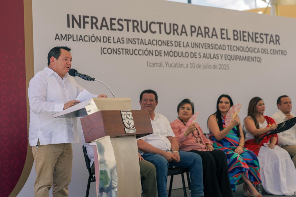 El Gobernador Joaquín Díaz Mena anunció una inversión estatal de aproximadamente 11 millones de pesos para la construcción y equipamiento de cinco nuevas aulas en la Universidad Tecnológica del Centro (UTC) de Izamal, como parte del compromiso del Gobierno del Renacimiento Maya con la educación superior y el desarrollo del estado. Durante su visita al plantel, el titular del Ejecutivo reafirmó que esta acción responde al objetivo de consolidar a la educación como motor clave del crecimiento económico y social, permitiendo que más de 900 estudiantes cuenten con espacios dignos y adecuados para su formación académica.