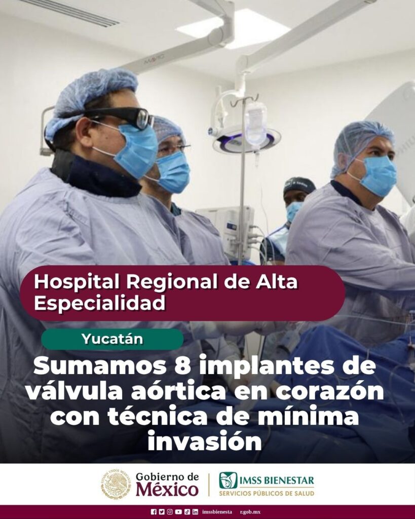 Como parte del fortalecimiento del Hospital Regional de Alta Especialidad de la Península de Yucatán (HRAEPY) perteneciente al IMSS Bienestar, médicos especialistas del servicio de Cardiología realizaron con éxito dos procedimientos de implante de válvula aórtica transcatéter (TAVI, por sus siglas en inglés) en pacientes con estenosis aórtica severa, una condición grave que dificulta el flujo sanguíneo del corazón hacia el resto del cuerpo.