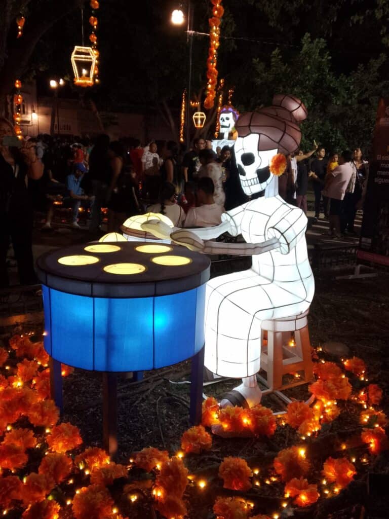 El vendedor de marquesitas, el taquero con todo y su trompo de pastor así como la catrina panuchera, además de una pareja de ánimas Yucatecas que portaban su tradicional vestimenta se mezclaban con representaciones de otras actividades más populares en el centro del país como el organillero y las catrinas elegantemente vestidas tal y como las representaba si creador, José Guadalupe Posadas.