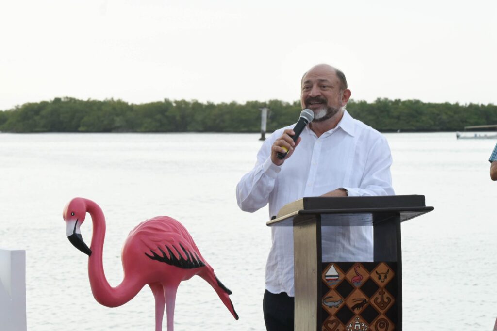Con motivo de la feria tradicional del puerto, el titular de la Sefotur, Darío Flota Ocampo, hizo entrega oficial de los logotipos tridimensionales de la marca Yucatán, un atractivo visual que se suma a la oferta turística de la localidad que incluye letras decorativas, tres esculturas de flamencos y una silla confidente, elaborados en concreto para garantizar su durabilidad.