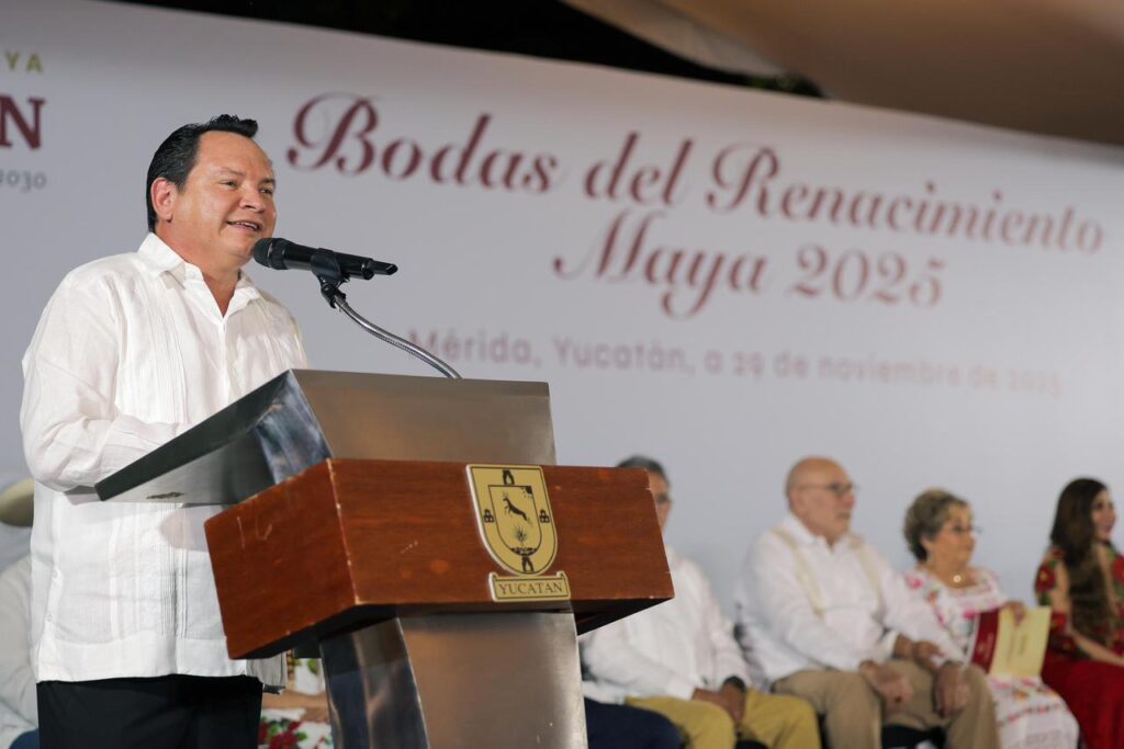 El titular del Ejecutivo estatal felicitó a las y los recién casados, ya que demuestran que las familias yucatecas se construyen con respeto, cariño y con la decisión valiente de unir sus vidas.