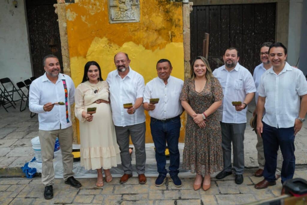 Previo al primer brochazo simbólico, se entregó a la alcaldesa de Izamal el Módulo de Información Turística, recientemente remodelado por Sefotur.