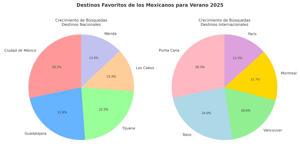 Este aumento se inscribe en una tendencia más amplia que refleja el creciente deseo de los mexicanos por explorar su propio país. Las búsquedas de vuelos nacionales experimentaron un incremento considerable, destacando los siguientes destinos:
