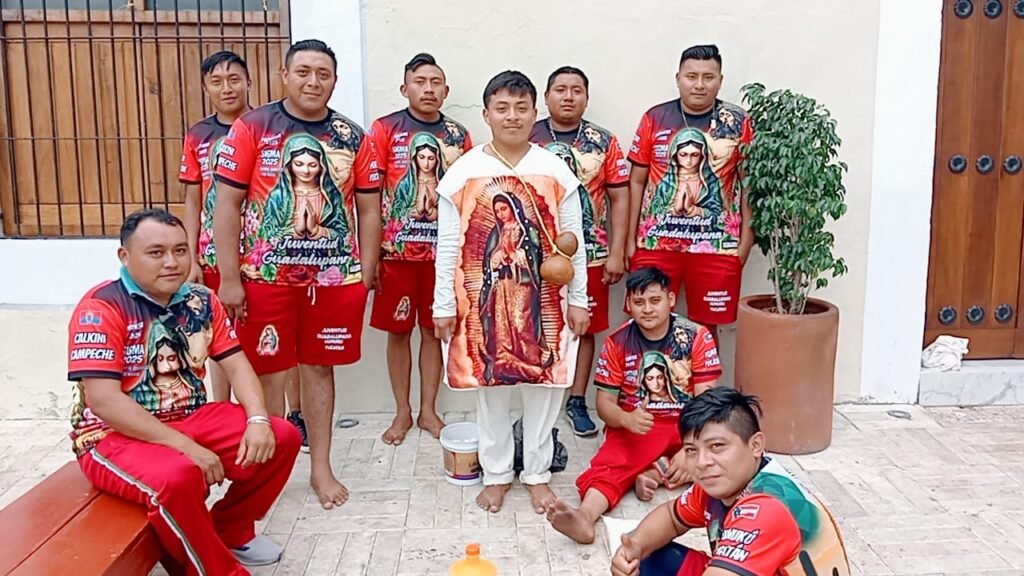 Un poco más allá descansa un grupo más joven, provenientes de Calkiní, Campeche, quienes portan su tradicional antorcha y planean llegar a su natal Hunukú, en Temozón, la noche del 11. Se hacen llamar Juventud Guadalupana, agrupación con 22 años de historia. Edwin Alexander, vestido al estilo de Juan Diego con la imagen de la Virgen en el pecho, explica: “Lo hago en agradecimiento. Me da salud, cuida a mi familia, nos da trabajo”.