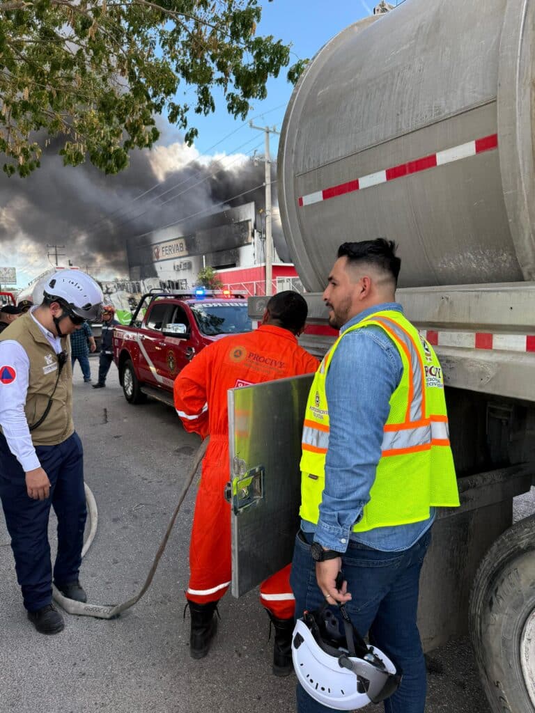 La Coordinación Estatal de Protección Civil (Procivy) informa que esta tarde se atendió un incendio registrado en una bodega de materiales plásticos, ubicada sobre el Anillo Periférico de Mérida, a la altura de la colonia Fidel Velázquez, en las inmediaciones del puente hacia Tixkokob, por la calle 59.