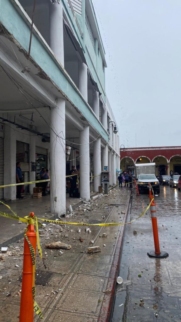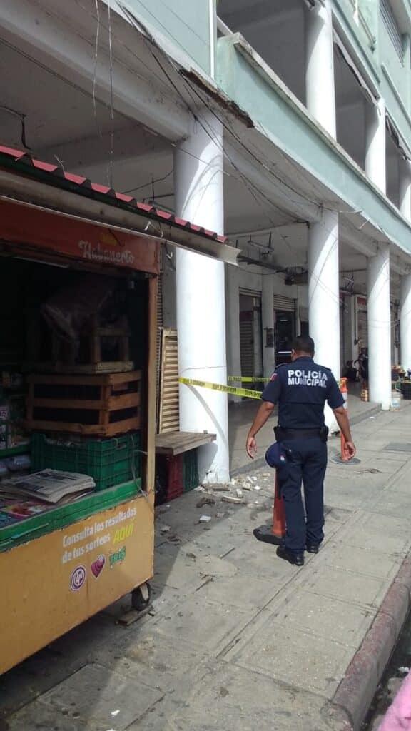 El mercado Lucas de Gálvez presentó desprendimiento de una parte de cornisa de la fachada, por lo que se retiró a los vendedores ubicados en el área.