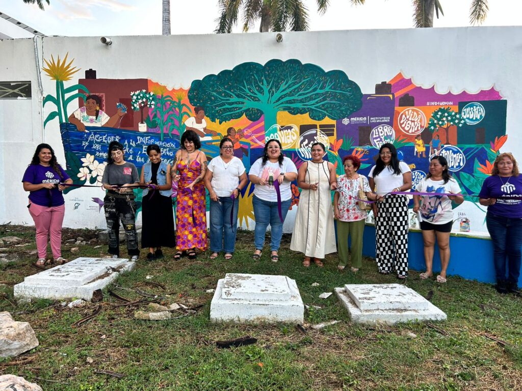 El mural “Acceder a la información es un derecho para las mujeres” ya puede admirarse en el Centro Aprende “Sara Mena”, ubicado en la colonia Fidel Velázquez, como parte de la campaña Informando a las Mujeres, Transformando Vidas del Ayuntamiento de Mérida, a través del Instituto de las Mujeres y en colaboración con The Carter Center.