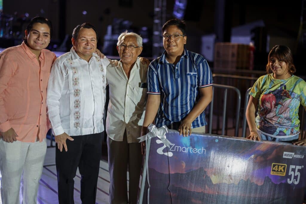 En el evento, Díaz Mena encabezó la entrega de premios seleccionados a través de una tómbola y contó con la presentación del comediante regional “Tía Chayo” y el espectáculo musical de la cantante Mariana Seoane y la Sonora Dinamita.