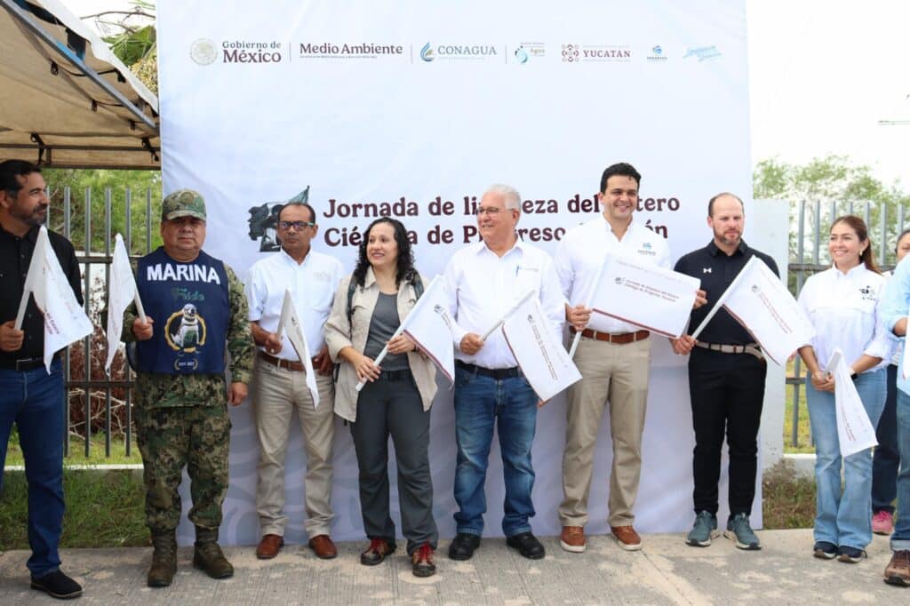 El evento fue encabezado por el director general del Organismo de Cuenca Península de Yucatán de la Conagua, José Luis Acosta Rodríguez, acompañado de la secretaria de Desarrollo Sustentable (SDS), Neyra Silva Rosado; el presidente municipal de Progreso, Erik José Rihani González; así como representantes de la Secretaría de Marina, la Procuraduría Federal de Protección alAmbiente (Profepa) y la Comisión Nacional Forestal (Conafor).