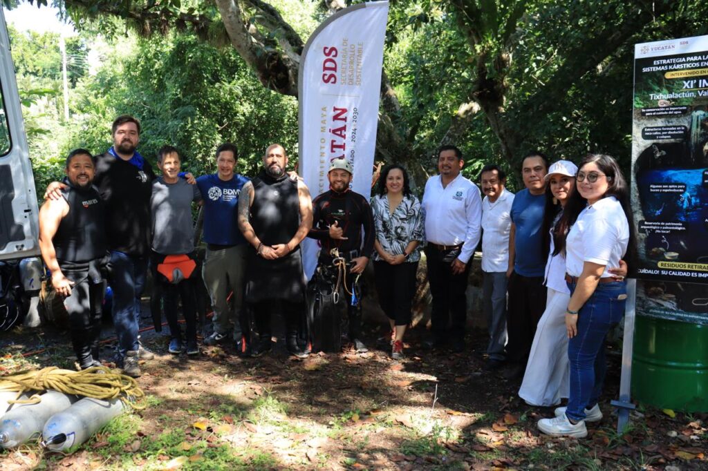 En esta jornada participaron Elsy María Sáenz Pérez, directora de Gestión y Conservación de Recursos Naturales de la SDS; Juan Carlos Cano Abán, comisario municipal de Tixhualactún; Marcela Cosme Correa, superintendente Jr. de Calidad y Normatividad de Empaques Nova; y José Gaspar Hau Kuyok, presidente del Museo del Artesano de Tixhualactún, quienes sumaron esfuerzos para fortalecer la conservación de los sistemas kársticos del estado.